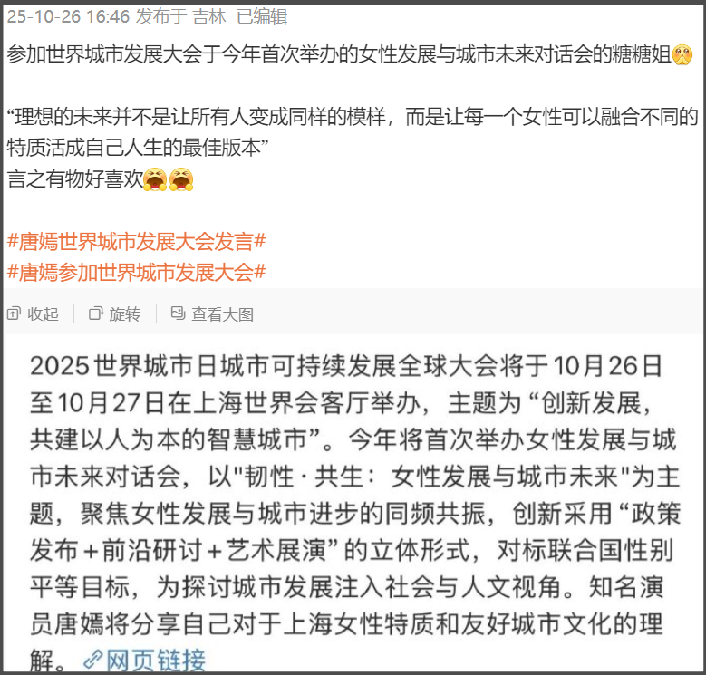 媒体还拍到唐嫣落地上海,隔天参加了世界城市发展大会,出席女性发展与城市未来主题的对话会,这也是她风波后首次露面,毫不意外没有提及老公罗晋相关,整个人状态很是不错,灰色西装搭配长裙,大方又得体,一副独立自信女性的模样。