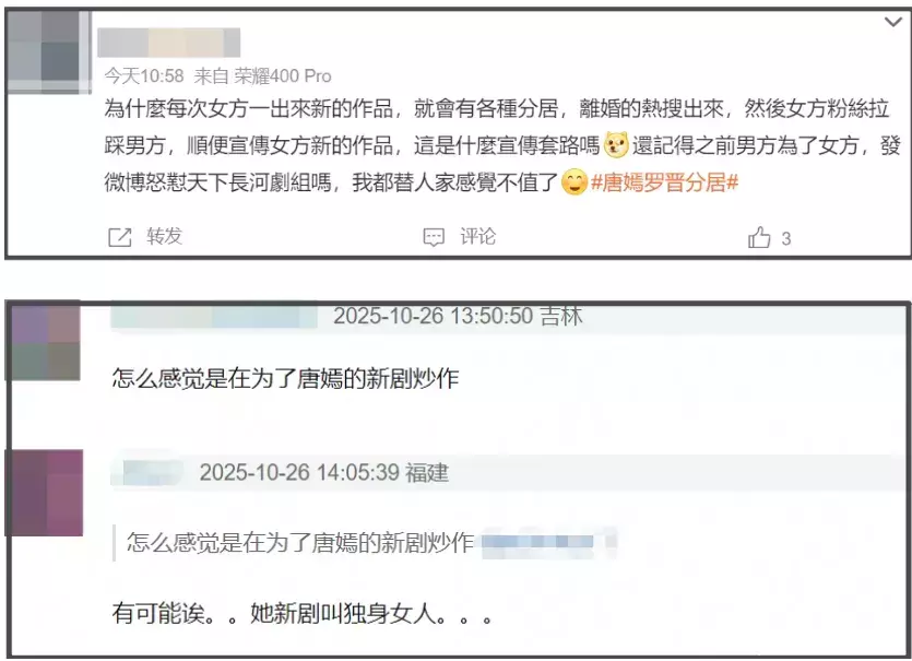 ——唐嫣粉丝对外喊话拒绝娇妻论,列出罗晋婚前婚后拍戏时间线,质疑他没有陪伴妻子,还把孩子甩手给女方一家带大。