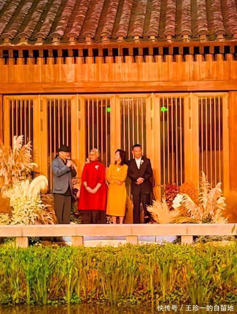 新郎的母亲穿着一身金黄色礼服,很是吸睛。